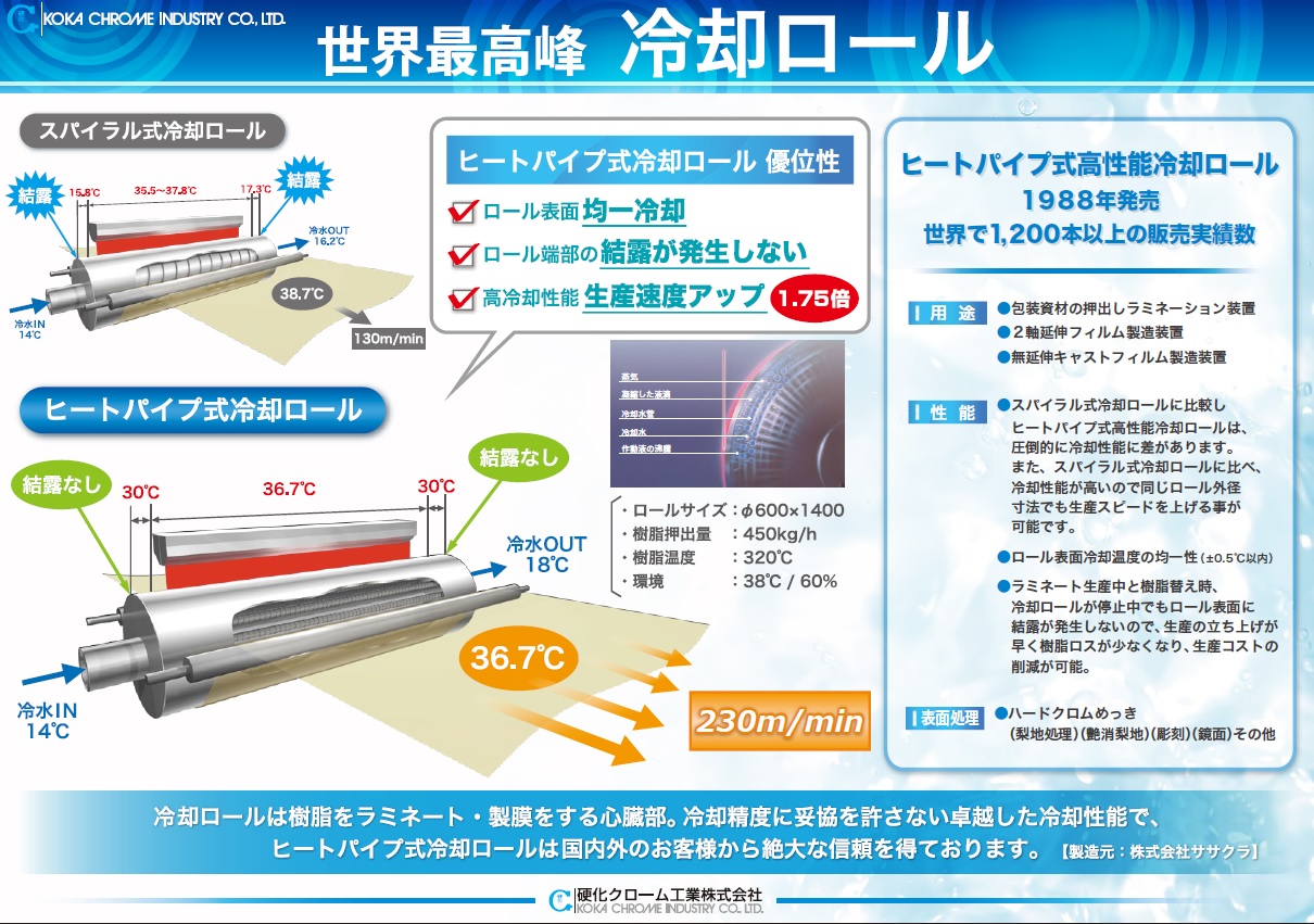 特殊構造により冷却ロールの課題をクリアした高性能冷却ロール『ヒートパイプ式冷却ロール』 特徴 ■ロー…